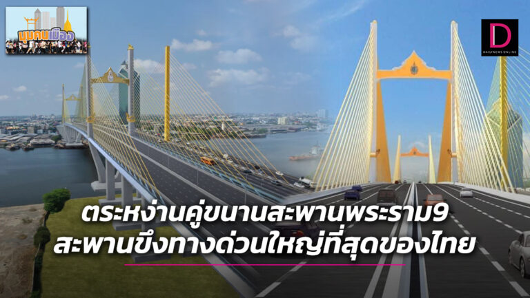 ตระหง่านคู่ขนานสะพานพระราม 9 สะพานขึงทางด่วนใหญ่ที่สุดของไทย