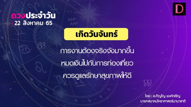 เช็กดวงประจำวันที่ 22 ส.ค. 65 สีสิริมงคล-ดำ ม่วงแก่ เทา สีอัปมงคล-แดง แดงส้ม