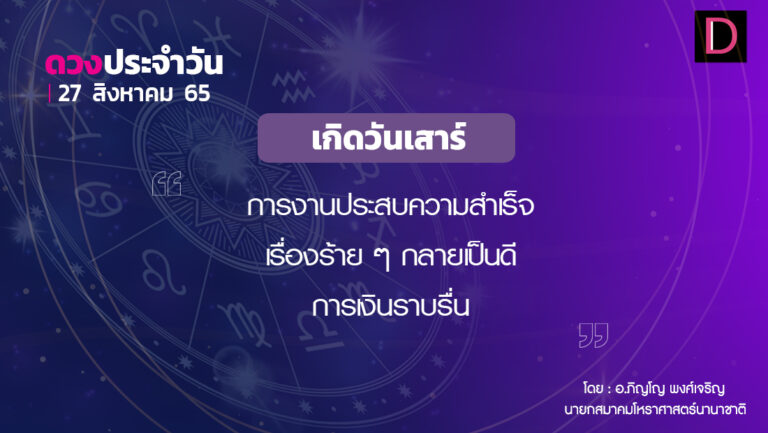 เช็กดวงประจำวันที่ 27 ส.ค.65 สีสิริมงคล-ฟ้า น้ำเงิน สีอัปมงคล-เขียวสด