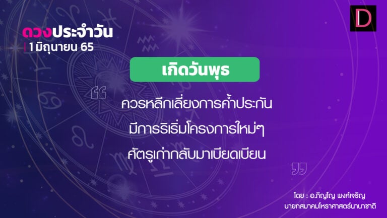 เช็กดวงประจำวันที่ 1 มิ.ย. 65 สีสิริมงคล-ม่วงดอกตะแบก สีอัปมงคล-ชมพู