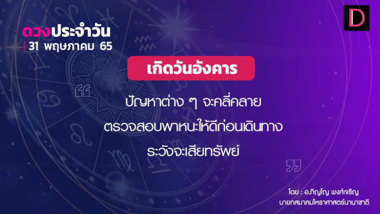 เช็กดวงประจำวันที่ 31 พ.ค. 65 สีสิริมงคล-เหลือง น้ำตาล สีอัปมงคล-ขาว งาช้าง