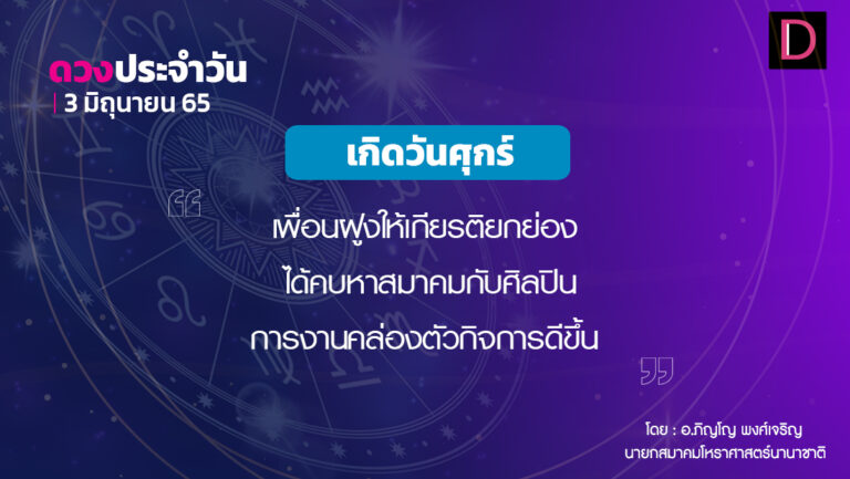 เช็กดวงประจำวันที่ 3 มิ.ย. 65 สีสิริมงคล-ชมพู สีอัปมงคล-ม่วงดอกตะแบก ดำ