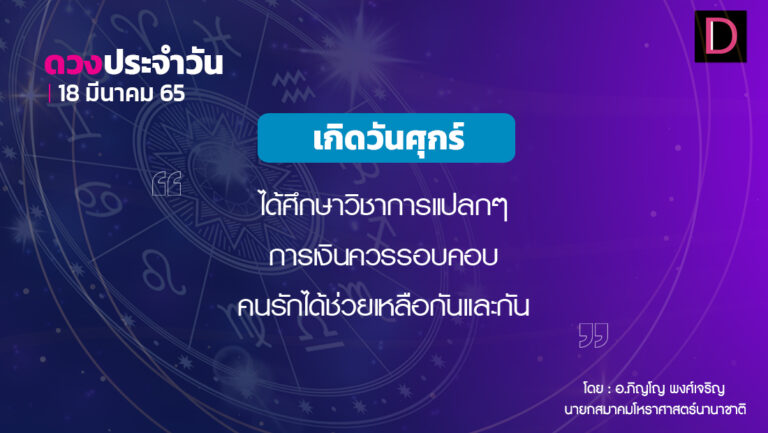 เช็กดวงประจำวันที่ 18 มี.ค. 65 สีสิริมงคล-ชมพู สีอัปมงคล-ม่วงดอกตะแบก ดำ