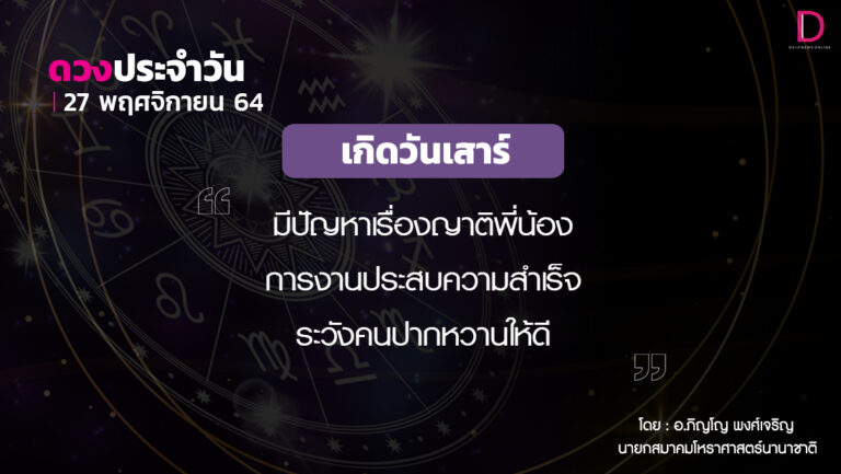เช็กดวงประจำวันที่ 27 พฤศจิกายน 2564
