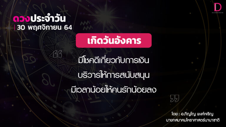 เช็กดวงประจำวันที่ 30 พฤศจิกายน 2564