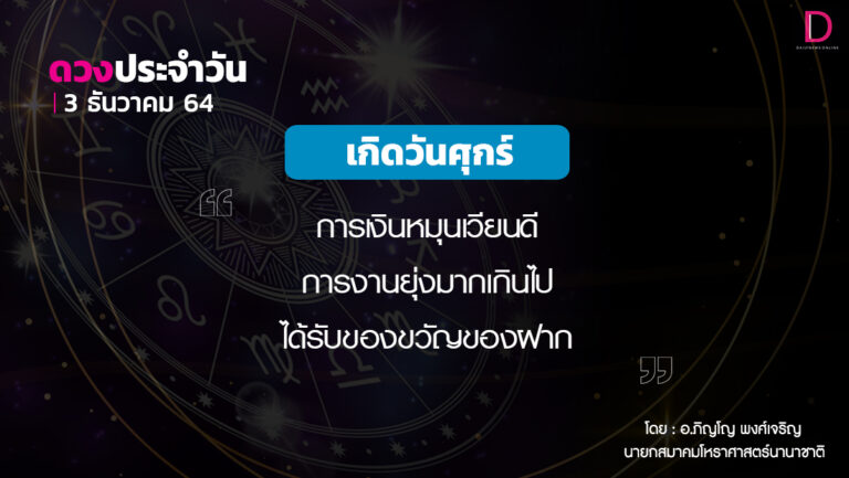 เช็กดวงประจำวันที่ 3 ธันวาคม 2564
