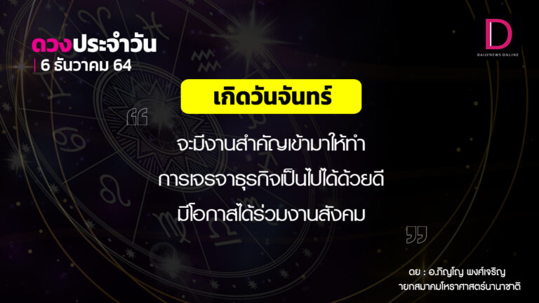 เช็กดวงประจำวันที่ 6 ธันวาคม 2564