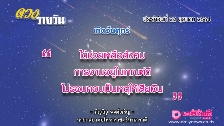 เช็กดวงประจำวันที่ 22 ตุลาคม 2564