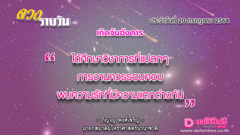 เช็กดวงประจำวันที่ 20 กรกฎาคม 2564