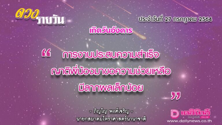 เช็กดวงประจำวันที่ 27 กรกฎาคม 2564