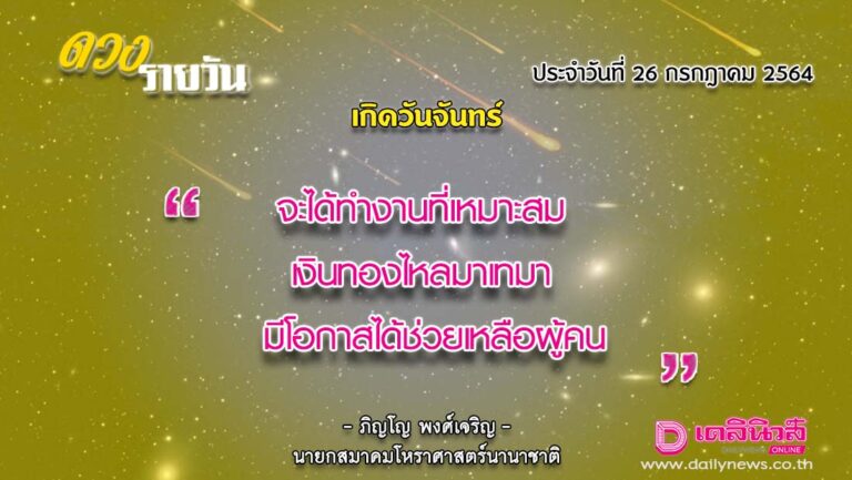 เช็กดวงประจำวันที่ 26 กรกฎาคม 2564