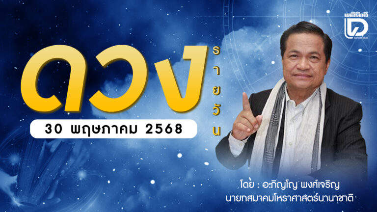 เช็กดวงประจำวันที่ 30 พ.ค. 68 ราศีที่ดาวศรีสถิต “กรกฎ” ราศีที่ดาวกาลีสถิต “กุมภ์” 30 พฤษภาคม 2568 6:00 น.