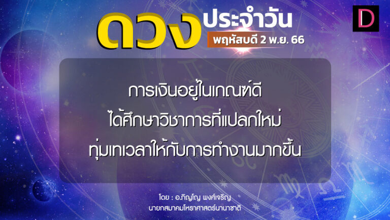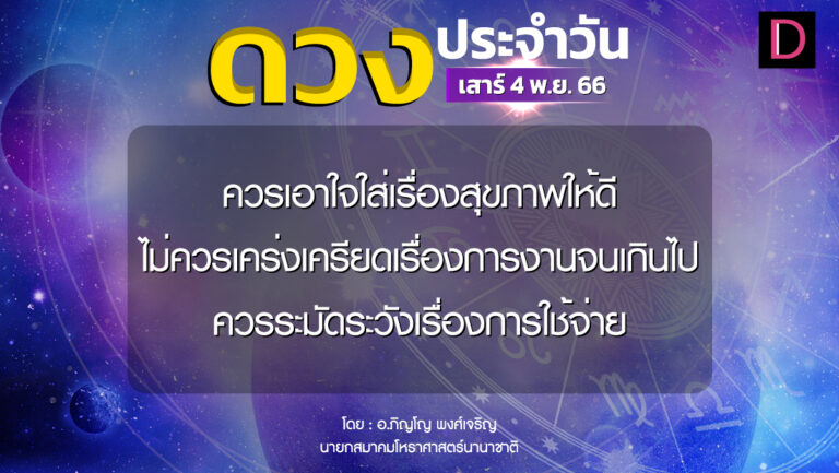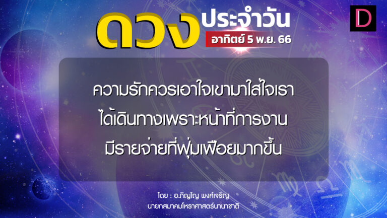 เช็กดวงประจำวันที่ 5 พ.ย. 66 ราศีที่ดาวศรีสถิต”พิจิก” ราศีที่ดาวกาลีสถิต”กันย์” 5 พฤศจิกายน 2566 6:00 น.