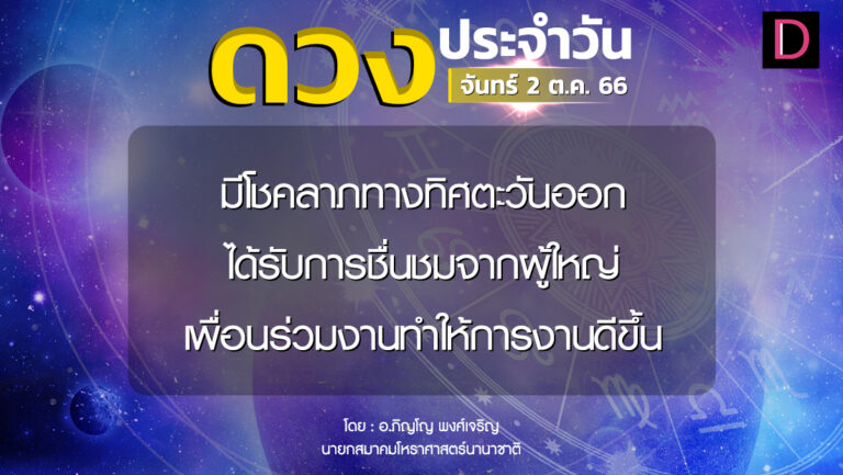 เช็กดวงประจำวันที่ 2 ต.ค. 66 สีสิริมงคล-ดำ ม่วงแก่ เทา สีอัปมงคล-แดง แดงส้ม