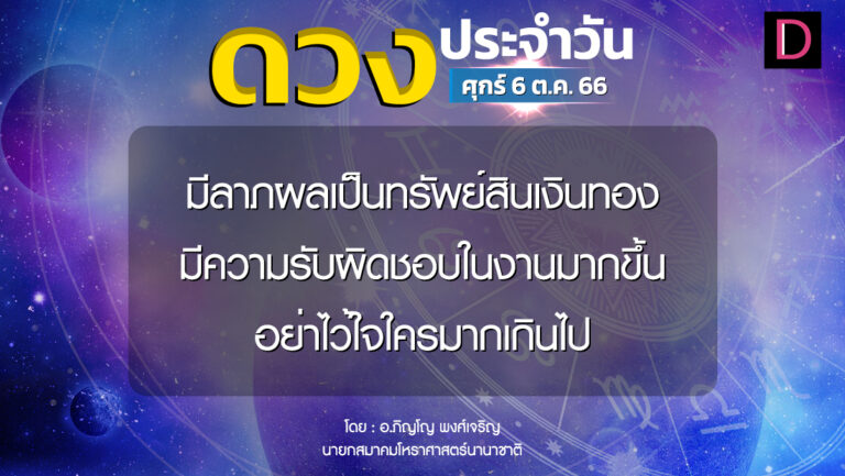 เช็กดวงประจำวันที่ 6 ต.ค. 66 สีสิริมงคล-ชมพู สีอัปมงคล-ม่วงดอกตะแบก ดำ