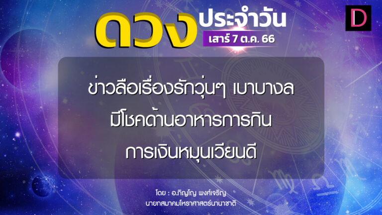 เช็กดวงประจำวันที่ 7 ต.ค. 66 สีสิริมงคล-ฟ้า น้ำเงิน สีอัปมงคล-เขียวสด