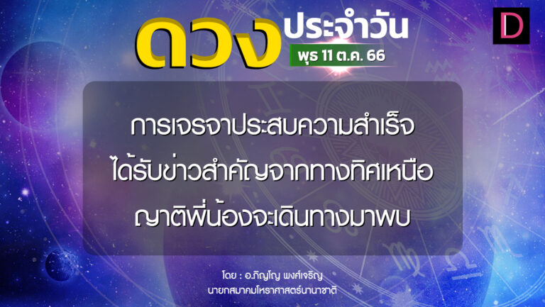 เช็กดวงประจำวันที่ 11 ต.ค. 66 สีสิริมงคล-ม่วงดอกตะแบก สีอัปมงคล-ชมพู