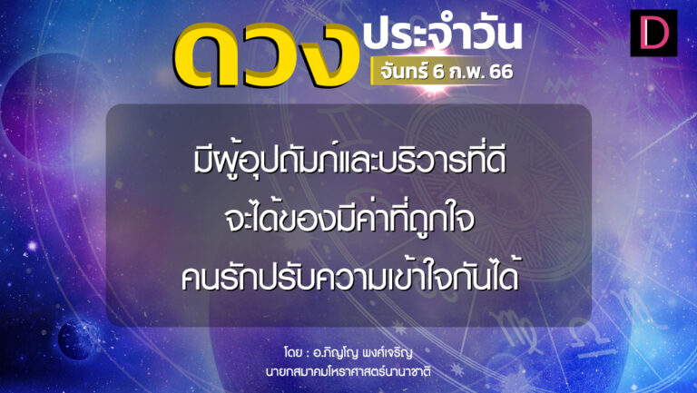 เช็กดวงประจำวันที่ 6 ก.พ. 66 สีสิริมงคล-ดำ ม่วงแก่ เทา สีอัปมงคล-แดง แดงส้ม 6 กุมภาพันธ์ 2566 6:00 น.