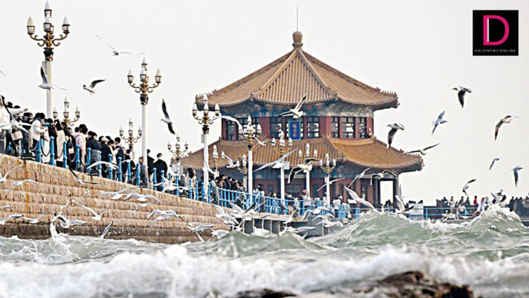 แห่ชมฝูง ‘นกนางนวล’ บินโฉบเฉี่ยวในชิงเต่า