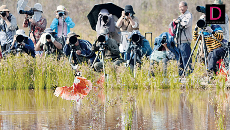 กว่างซีจับภาพ ‘นกช้อนหอยแดง’ กลางพื้นที่ชุ่มน้ำ