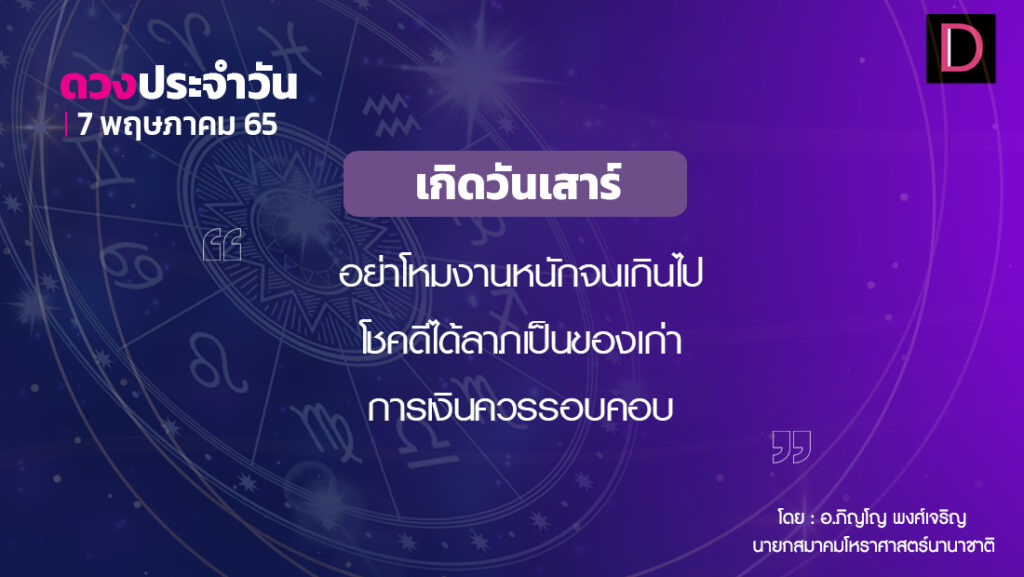 วันนี้ เวลา 00.00-08.18 น. ดาวจันทร์เสวยปุนนัพสุนักษัตรฤกษ์ที่ 7 ประกอบด้วยเพชฌฆาตแห่งฤกษ์ เพชฌฆาต แปลว่า ผู้ฆ่า เวลา 08.19-24.00 น. ดาวจันทร์เสวยปุษยะนักษัตรฤกษ์ที่ 8 ประกอบด้วยราชาแห่งฤกษ์ ราชา แปลว่า พระเจ้าแผ่นดิน เวลา 00.00-08.26 น.-ห้ามทำการมงคล เวลา 08.27-24.00 น.-ทำการมงคลได้สารพัดตามฤกษ์บนหมวดราชาฤกษ์ ทิศที่เป็นมงคล-เหนือ ทิศอัปมงคล-ใต้ สีประจำวัน-ดำ สีสิริมงคล-ฟ้า น้ำเงิน สีอัปมงคล-เขียวสด ราศีที่ดาวศรีสถิต-มีน ราศีที่ดาวกาลีสถิต-เมษ