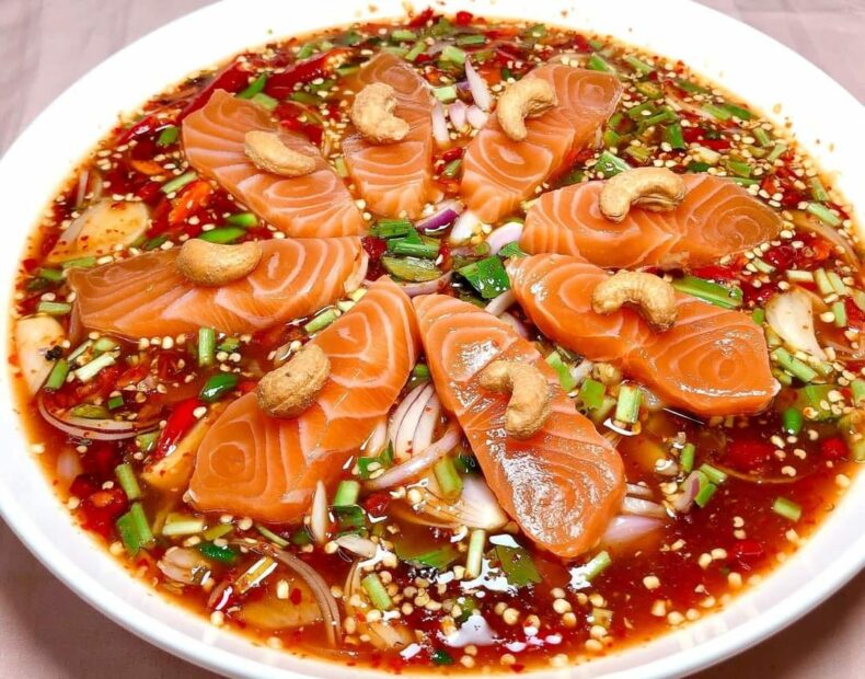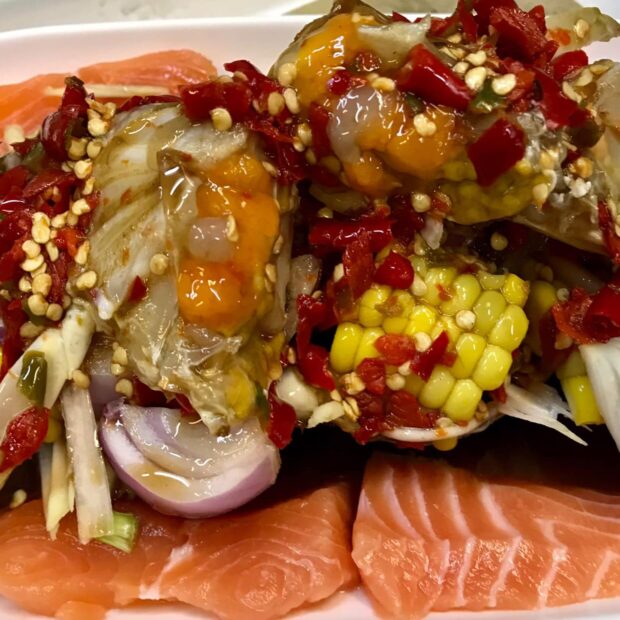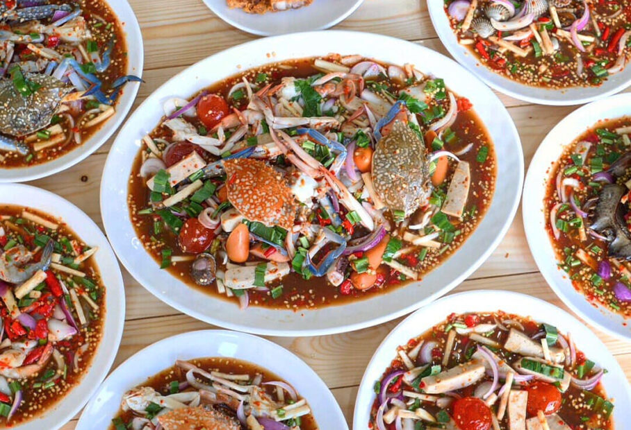 แค่จานแรกที่มาวาง “น้องเผือก” ก็เห็นน้ำยำสีสันจัดจ้าน จนไม่ต้องบอกว่ารสชาติจะเด็ดขนาดไหน ซึ่งเมนูสารพัดเขาเด็ดจริงๆ มีมายั่วน้ำลายทั้งเมนูยำ อย่างยำไข่แดงเค็มแซลมอนกุ้งสด, ยำข้าวโพด, ยำปูม้า หรือส้มตำก็มีให้ลองความเผ็ดปากเบิร์น สะใจขาแซ่บแน่นอนค่ะ!