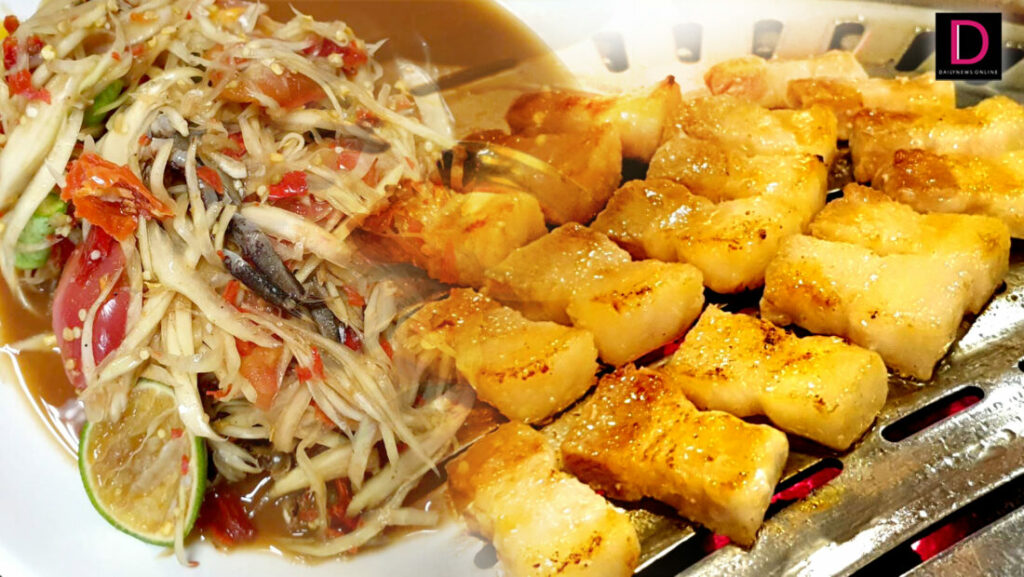 ส่วนหมูปิ้ง 55.6 กรัม คอหมูย่าง 48.6 กรัม มีปริมาณไขมันเกินถึง 2 เท่าต่อมื้อ คิดเป็น 71 เปอร์เซ็นต์ และ 62 เปอร์เซ็นต์ ของปริมาณพลังงานที่ร่างกายควรได้รับตลอดทั้งวัน