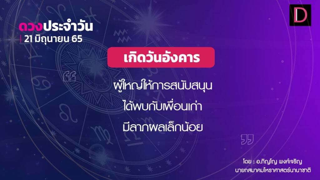 วันนี้ เวลา 00.00-09.30 น. ดาวจันทร์เสวยปุรพภัทรบทนักษัตรฤกษ์ที่ 25 ประกอบด้วยเพชฌฆาตแห่งฤกษ์ เพชฌฆาต แปลว่า ผู้ฆ่า เวลา 09.31-24.00 น. ดาวจันทร์เสวยอุตรภัทรบทนักษัตรฤกษ์ที่ 26 ประกอบด้วยราชาแห่งฤกษ์ ราชา แปลว่า พระเจ้าแผ่นดิน วันอังคาร-อธิบดีและอุบาทว์ตามกาลโยค เวลา 00.00-01.51 น.-ทำการมงคลได้ตามฤกษ์บนหมวดเพชฌฆาตฤกษ์ เวลา 01.52-24.00 น.-ห้ามทำการมงคล ทิศที่เป็นมงคล-ตะวันตก ทิศอัปมงคล-ตะวันออก สีประจำวัน-ชมพู สีสิริมงคล-เหลือง น้ำตาล สีอัปมงคล-ขาวงาช้าง ราศีที่ดาวศรีสถิต-มีน ราศีที่ดาวกาลีสถิต-มีน