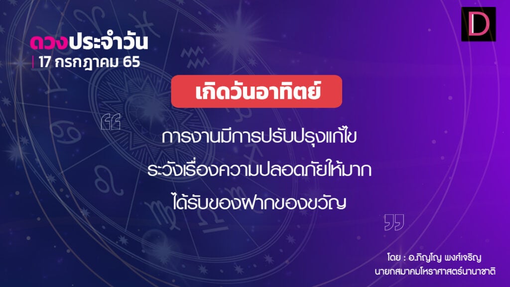 สุริยคติกาล วันที่ 17 กรกฎาคม พ.ศ. 2565 ค.ศ. 2022 จันทรคติกาล ตรงกับวันอาทิตย์ แรม 4 ค่ำ เดือน 8 จัตวาศก จุลศักราช 1384 อาทิตย์อุทัย เวลา 05.58 น. เที่ยงจริง เวลา 12.24 น. อาทิตย์ตก เวลา 18.49 น. จันทร์ขึ้น เวลา 21.37 น.