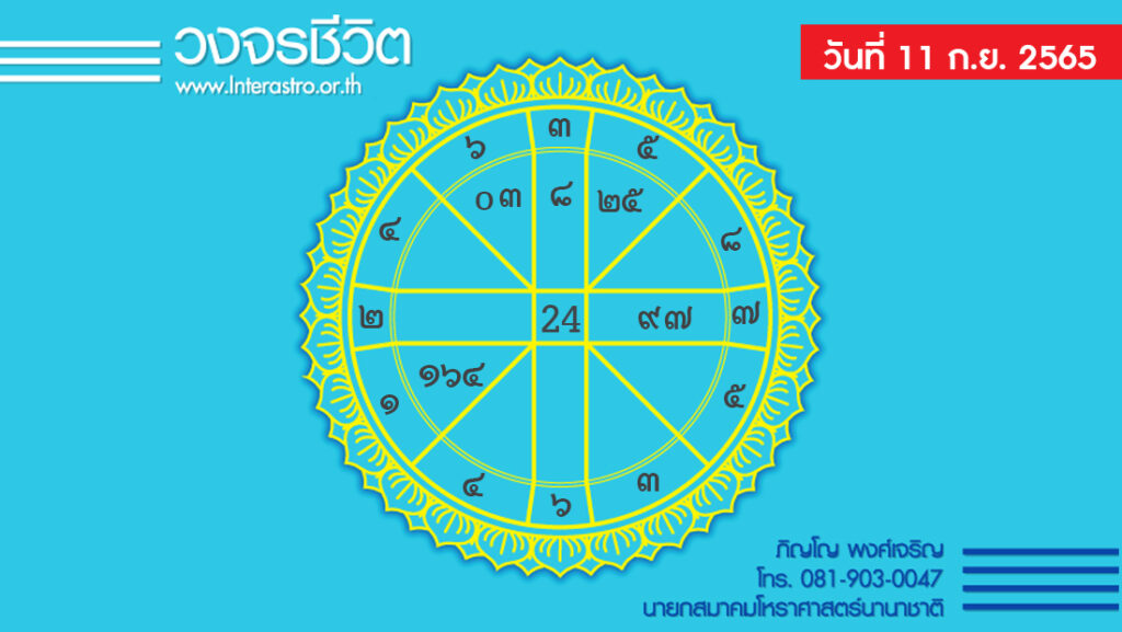 วันนี้ เวลา 00.00-09.06 น. ดาวจันทร์เสวยปุรพภัทรบทนักษัตรฤกษ์ที่ 25 ประกอบด้วยเพชฌฆาตแห่งฤกษ์ เพชฌฆาต แปลว่า ผู้ฆ่า เวลา 09.07-24.00 น. ดาวจันทร์เสวยอุตรภัทรบทนักษัตรฤกษ์ที่ 26 ประกอบด้วยราชาแห่งฤกษ์ ราชา แปลว่า พระเจ้าแผ่นดิน เวลา 00.00-24.00 น.-ห้ามทำการมงคล ทิศที่เป็นมงคล-ใต้ ทิศอัปมงคล-เหนือ สีประจำวัน-แดง สีสิริมงคล-เขียวสด สีอัปมงคล-ฟ้า น้ำเงิน ราศีที่ดาวศรีสถิต-สิงห์ ราศีที่ดาวกาลีสถิต-สิงห์