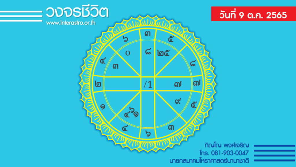 สุริยคติกาล วันที่ 9 ตุลาคม พ.ศ. 2565 ค.ศ. 2022 จันทรคติกาล ตรงกับวันอาทิตย์ ขึ้น 14 ค่ำ เดือน 11 จัตวาศก จุลศักราช 1384 อาทิตย์อุทัย เวลา 06.08 น. เที่ยงจริง เวลา 12.06 น.อาทิตย์ตก เวลา 18.03 น. จันทร์ตก เวลา 06.03 น.