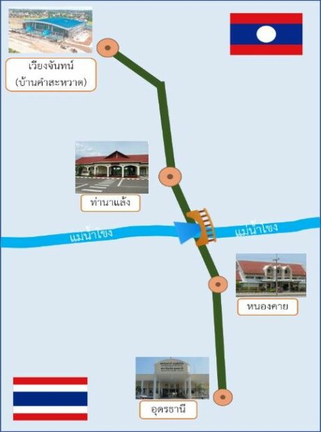 3.การพัฒนาย่านขนถ่ายสินค้าของฝั่งไทย-ลาวระยะเร่งด่วน พัฒนาสถานีหนองคาย รองรับการขนส่งสะพานเดิมโดยเพิ่มรถจาก 4 ขบวนต่อวัน เป็น 14 ขบวนต่อวัน และเพิ่มจาก 12 แคร่ เป็น 25 แคร่ รวมถึงพัฒนาบริเวณสถานี 80 ไร่ ให้เป็นพื้นที่ตรวจปล่อยสินค้าระหว่างประเทศ และเปลี่ยนถ่ายจากถนนสู่ราง และระยะยาวพัฒนาพื้นที่สถานีรถไฟนาทา จ.หนองคาย รองรับการขนส่งจากลาว-จีน และส่งออกไปยัง สปป.ลาว