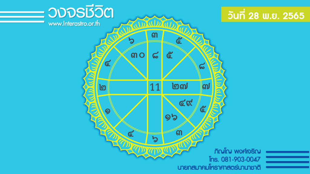 สุริยคติกาล วันที่ 28 พฤศจิกายน พ.ศ. 2565 ค.ศ. 2022 จันทรคติกาล ตรงกับวันจันทร์ ขึ้น 5 ค่ำ เดือน 1 ปีขาล จัตวาศก จุลศักราช 1384 อาทิตย์อุทัย เวลา 06.24 น. เที่ยงจริง เวลา 12.05 น. อาทิตย์ตก เวลา 17.48 น.จันทร์ตก เวลา 22.20 น.