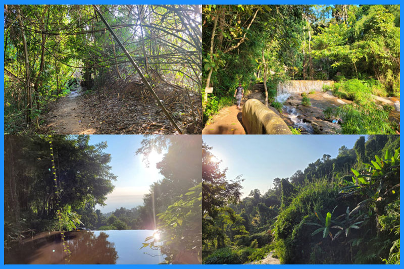 ระหว่างทางขึ้นค่อนข้างลำบากและหอบสำหรับผม แต่เมื่อได้เห็นวัดที่งดงามถือว่าเป็นรางวัล หายเหนื่อยเลยครับ ได้ขึ้นไปไหว้พระ ถ่ายรูป หันกลับมาชมวิวว่าเราขึ้นมาสูงเหมือนกันนะ น้ำตกสะท้อนแดดยามเช้าสวยมาก จริง ๆ เส้นทางมีให้ขึ้นไปอีกสัก 2 กิโล แต่ผมว่าแค่นี้สำหรับผมกำลังดีแล้ว ขาลงก็สนุกไปอีกแบบ ที่ว่าชันเมื่อกี้กว่าจะไต่ขึ้นมาได้ พอขาลงจะพุ่งลงเร็ว หาที่ยึดเกาะไว้ก็ดีและระวังข้อเท้าพลิกด้วย