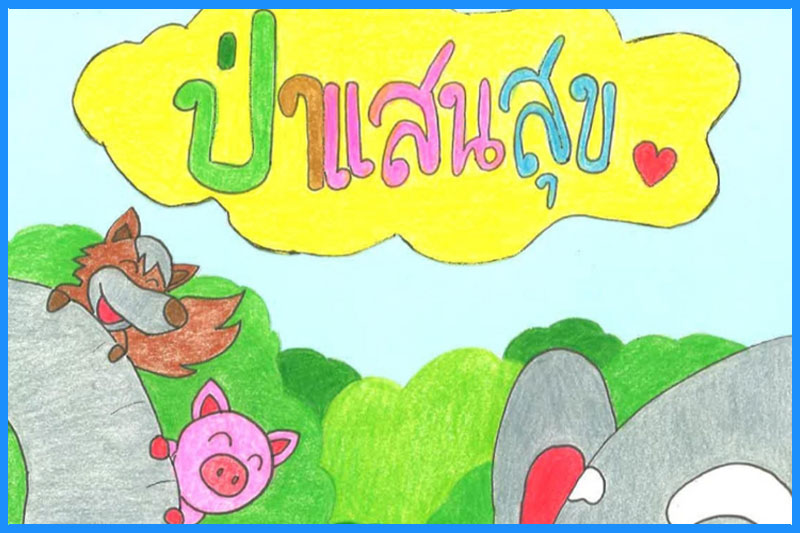 ด.ช.สิริพงษ์ เลี้ยงบุญเลิศชัย โรงเรียนกรุงเทพคริสเตียนวิทยาลัย ชื่อผลงาน ป่าแสนสุข ประเภทสื่อ นิทาน