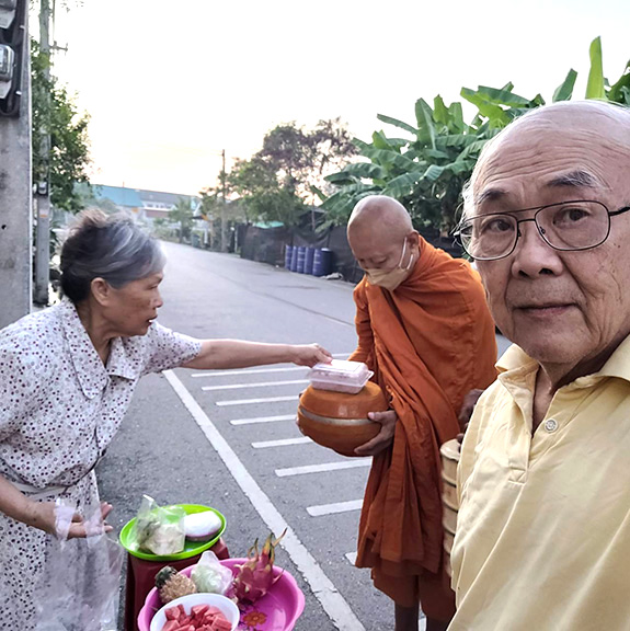 @@@ ทันทีที่กลับมาเยือนมาตุภูมิ พ.ญ.สาลีวรรณ และ นพ.วีระศักดิ์ ลิมะวรารัตน์ ปลื้มอกปลื้มใจที่มีโอกาสทำบุญตักบาตร ซึ่งปฏิบัติมาแต่เยาว์วัย ที่ทำให้จิตใจสบายที่เป็นผู้ให้