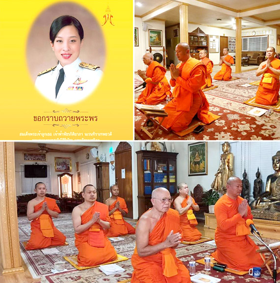 @@@ พระครูศรีชัยวิเทศ เจ้าอาวาสวัดไชยมงคล เมืองแฟร์ฟิลด์ รัฐแคลิฟอร์เนีย นำคณะสงฆ์บำเพ็ญธรรมถวายพระพรชัยมงคลแด่สมเด็จพระเจ้าลูกเธอ เจ้าฟ้าพัชรกิติยาภา นเรนทิราเทพยวดี กรมหลวงราชสาริณีสิริพัชร มหาวัชรราชธิดา ให้ทรงหายพระประชวรโดยเร็ว
