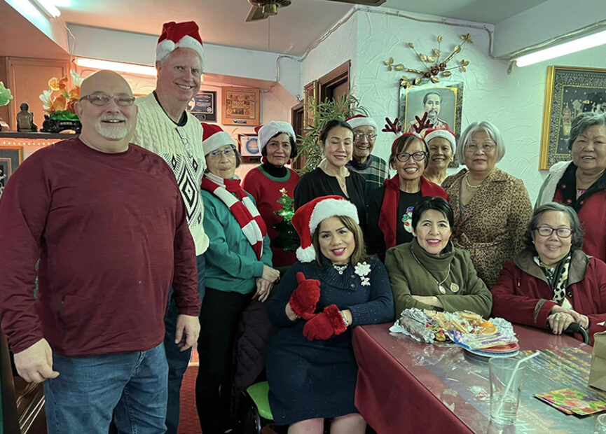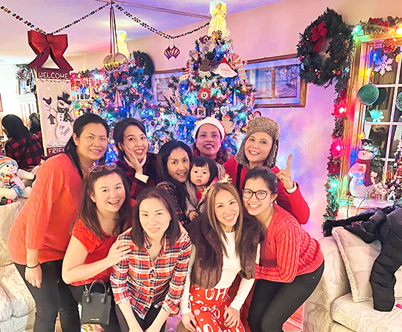 @@@ ของขวัญคริสต์มาสไม่ต้องซื้อแล้ว มาหาเอาที่นี่ เมื่อวันอาทิตย์ที่ 18 ธันวาคม 2565 คุณบุญตาจิตร ทอนร่า จัดฉลองคริสต์มาส ที่บ้านย่านเมืองเอดิสัน รัฐนิวเจอร์ซี่ย์ ในหมู่เพื่อนฝูงที่สนิท จากนิวยอร์ก,นิวเจอร์ซี่ย์ และรัฐเพนซิลเวเนีย เจ้าภาพทำอาหารปักษ์ใต้ชั้นยอด คือแกงไตปลา ซึ่งเป็นที่ชื่นชอบของทุก ๆคนที่ไปร่วมงาน นอกจากนี้ยังมีการแลกเปลี่ยนของขวัญที่นำมาจับฉลากกันคนละ$50.00 ดอลล่าร์ อีกด้วย จบงานทุกคนมีของหอบติดไม้ติดมือกลับบ้านกันทุกคน ในภาพ เจ้าของบ้านคุณบุญตาจิตร (แถวหลังสุดทีสองจากขวา) อิ่มอกอิ่มใจที่เห็นเพื่อน ๆสนุกสนานและมีความสุขกับงานปาร์ตี้ครั้งนี้