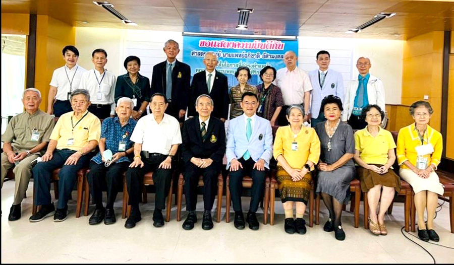 @@@ เมื่อประมาณกลางเดืดอนธันวาคม 2565 สมาคมศิษย์เก่าแพทย์ศิริราช ในพระบรมราชูปถัมภ์ จัดเลี้ยงต้อนรับคณบดีคณะแพทย์ศิริราชพยาบาล คนใหม่ ศ.นพ.อภิชาติ อัศวมงคลกุล ( นั่งที่ 6 จากซ้าย) ถ่ายรูปร่วมกันเป็นที่ระลึกกับนายกสมาคมศิษย์เก่าแพทย์ศิริราช และ อดีตนายกสมาคมศิษย์เก่าแพทย์ศิริราช พร้อมทั้งคณาจารย์ และ เพื่อน ๆ ที่ไปร่วมแสดงความยินดี บรรยากาศสดชื่นเป็นกันเองฉันพี่ฉันน้อง ในภาพนั่งจากซ้าย ศ.เกียรติคุณ นพ. สมหวัง ด่านชัยวิจิตร,ศ.เกียรติคุณ นพ. บุญเจือ ธรณินทร์,รศ.นพ.วิบูล สุนทรพจน์,รศ.นพ. อติเรก จิวะพงศ์,รศ.นพ. ป่วน สุทธิพินิจธรรม,ศ.นพ. อภิชาติ อัศวมงคลกุล,ผศ.พญ. อรุณ วงษ์จิราษฎร์,พ.ต.หญิง จันทรา เจณณวาสิน,รศ.พญ. เล็ก ปริวิสุทธิ์,ศ.คลินิกเกียรติคุณ พญ. มานี ปิยะอนันต์, ยืนจากซ้าย รศ.นพ.นริศ กิจณรงค์,นพ.สุธน อิ่มประสิทธิชัย,ศ.คลินิกเกียรติคุณ พญ. ธารทิพย์ ประณุทนรพาล,ศ.เกียรติคุณ นพ. อมร ลีลารัศมี,ศ.คลินิกเกียรติคุณ นพ. อุดม คชินทร,ศ.เกียรติคุณ พญ.วรรณี นิธิยานันท์,รศ.พญ. สมบูรณ์ ธรรมเถกิงกิจ,นพ. วีระเดช ถิระวัฒน์,ศ.นพ. กีรติ เจริญชลวานิช, และ นพ.พล หิรัณยศิริ.