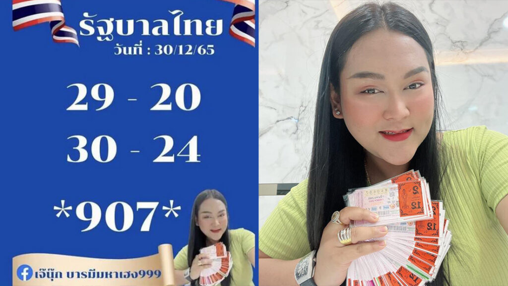 ขณะที่ “เจ๊นุ๊ก บารมีมหาเฮง” ได้ให้เลขสองตัว 29 – 20 – 30 – 24 เลขสามตัว 907