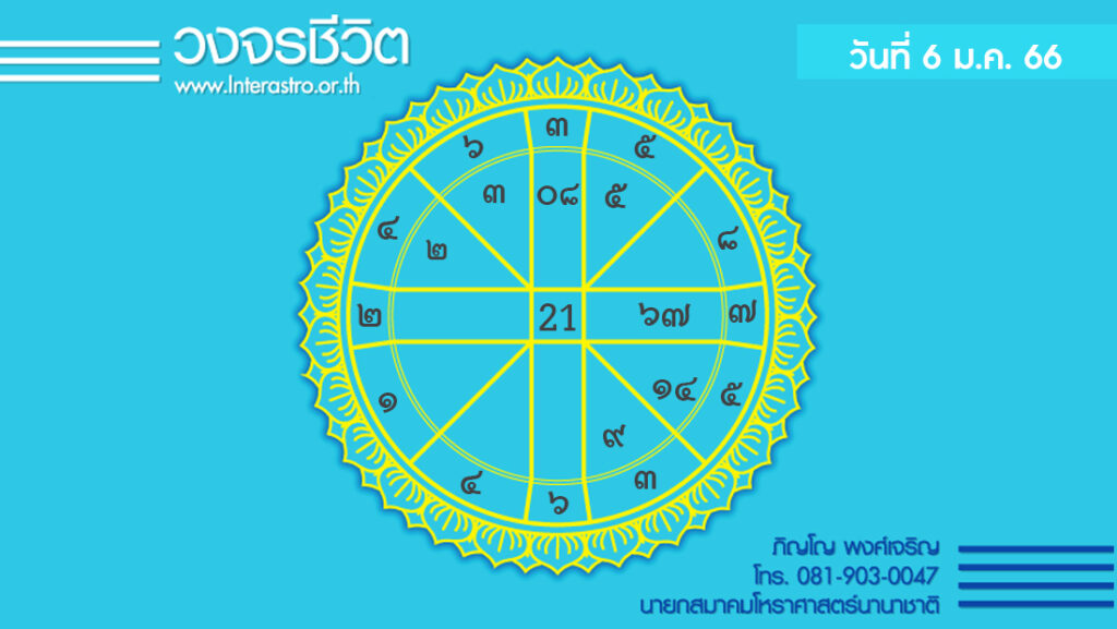 วันนี้ เวลา 00.00-21.54 น. ดาวจันทร์เสวยอารทรานักษัตรฤกษ์ที่ 6 ประกอบด้วยเทวีแห่งฤกษ์ เทวี แปลว่า นางพญา เวลา 21.55-24.00 น. ดาวจันทร์เสวยปุนนัพสุนักษัตรฤกษ์ที่ 7 ประกอบด้วยเพชฌฆาตแห่งฤกษ์ เพชฌฆาต แปลว่า ผู้ฆ่า เวลา 00.00-21.54 น.-ทำการมงคลได้สารพัดตามฤกษ์บนหมวดเทวีฤกษ์ เวลา 21.55-24.00 น.-ทำการมงคลได้ตามฤกษ์บนหมวดเพชฌฆาตฤกษ์ ทิศที่เป็นมงคล-ตะวันออกเฉียงใต้ ทิศอัปมงคล-ตะวันตกเฉียงเหนือ สีประจำวัน-ฟ้า น้ำเงิน สีสิริมงคล-ชมพู สีอัปมงคล-ม่วงดอกตะแบก ดำ ราศีที่ดาวศรีสถิต-พฤษภ ราศีที่ดาวกาลีสถิต-เมษ