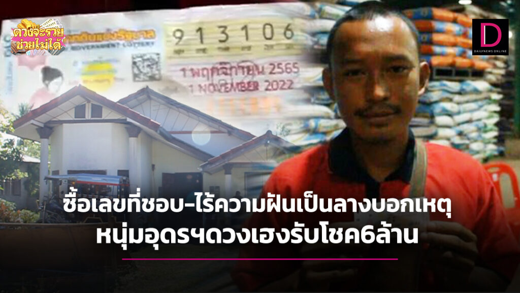 เช่นเดียวกับนายทักษิณ มีเบ้า หรือ ทัด วัย 28 ปี ที่มีความกตัญญูต่อผู้ให้กำเนิด เป็นชาว ต.เชียงพิณ อ.เมือง จ.อุดรธานี ที่ดวงดีถูกรางวัลที่ 1 หมายเลข 913106 งวดที่ 42 ชุดที่ 62 ประจำวันที่ 1 พฤศจิกายน 2565