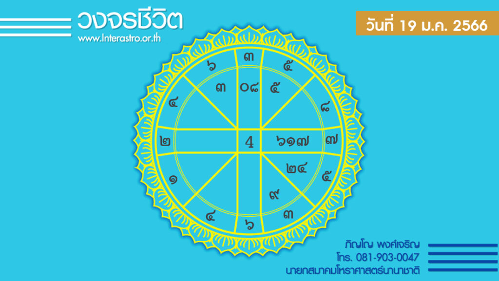 วันนี้ เวลา 00.00-11.06 น. ดาวจันทร์เสวยเชษฐนักษัตรฤกษ์ที่ 18 ประกอบด้วยสมโณแห่งฤกษ์ สมโณ แปลว่า ผู้สงบ เวลา 11.07-24.00 น. ดาวจันทร์เสวยมูละนักษัตรฤกษ์ที่ 19 ประกอบด้วยทลิทโทแห่งฤกษ์ ทลิทโท แปลว่า ผู้ขอ ผู้มักน้อย ยากจนเข็ญใจ วันพฤหัสบดี-โลกาวินาศตามกาลโยค เวลา 00.00-24.00 น.-ห้ามทำการมงคล ทิศที่เป็นมงคล-ตะวันออกเฉียงเหนือ ทิศอัปมงคล-ตะวันตกเฉียงใต้ สีประจำวัน-เหลือง แสด สีสิริมงคล-แดงส้ม สีอัปมงคล-ดำ ม่วงแก่ ราศีที่ดาวศรีสถิต-มังกร ราศีที่ดาวกาลีสถิต-มังกร