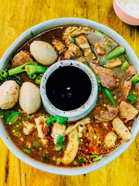 เจ้าดังแห่งย่านโชคชัย 4 ที่น้ำซุปหอมกลิ่นยาจีน ซดแล้วโล่งคอมากๆ ส่วนเครื่องในล้างอย่างดีไม่เหม็น ตัวเนื้อก็จะนำไปตุ๋นจนเปื่อยนุ่ม เนื้อสดนุ่มมาก ยิ่งได้ทานเนื้อเปื่อยกับเอ็นที่ตุ๋นจนเปื่อยนุ่ม แกล้มข้าวสวยร้อนๆ นี่ ทีเด็ดที่ต้องห้ามพลาดมากๆ