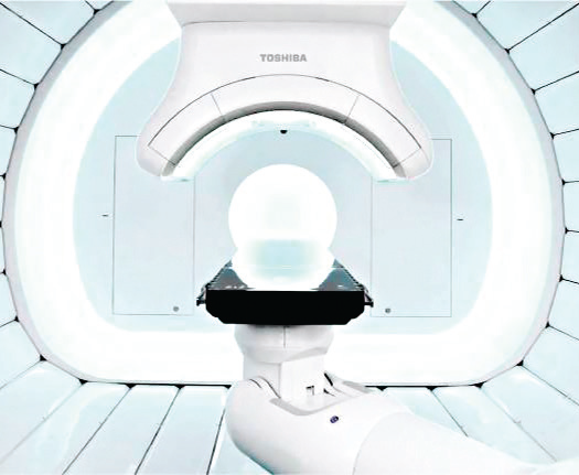 หนึ่งในกระบวนการการรักษาโรคมะเร็งที่เป็นมาตรฐานคือการ “ฉายรังสีรักษา” ซึ่งปัจจุบันก็ได้มีการพัฒนาเทคโนโลยีมาอย่างต่อเนื่อง อย่างเช่น “แขนยึดเครื่องฉายรังสีแบบหมุนขนาดเล็กที่สุดในโลก เพื่อการบำบัดรักษามะเร็งด้วยไอออนหนัก” ที่โตชิบา ได้มีการส่งมอบให้กับ โรงพยาบาลสถาบันวิทยาศาสตร์และเทคโนโลยีควอนตัมแห่งชาติหรือคิวเอสที (National Institutes for Quantum Science and Technology:QST) นำไปใช้ในการรักษาคนไข้ เมื่อปี 2559