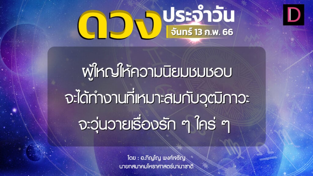 วันนี้ เวลา 00.00-21.06 น. ดาวจันทร์เสวยวิสาขานักษัตรฤกษ์ที่ 16 ประกอบด้วยเพชฌฆาตแห่งฤกษ์ เพชฌฆาต แปลว่า ผู้ฆ่า ทำการเพื่อให้สิ่งที่เข้ามาพ่ายแพ้ ข่มขวัญ น่ายำเกรง มีความขลังและศักดิ์สิทธิ์ เวลา 21.07-24.00 น. ดาวจันทร์เสวยอนุราชนักษัตรฤกษ์ที่ 17 ประกอบด้วยราชาแห่งฤกษ์ ราชา แปลว่า พระเจ้าแผ่นดิน เวลา 00.00-03.01 น.-ห้ามทำการมงคล เวลา 03.02-06.42 น.-ทำการมงคลได้ตามฤกษ์บนหมวดเพชฌฆาตฤกษ์ เวลา 06.43-24.00 น.-ห้ามทำการมงคล ทิศที่เป็นมงคล-ตะวันตกเฉียงใต้ ทิศอัปมงคล-ตะวันออกเฉียงเหนือ สีประจำวัน-ขาว สีสิริมงคล-ดำ ม่วงแก่ เทา สีอัปมงคล-แดง แดงส้มราศีที่ดาวศรีสถิต-มังกร ราศีที่ดาวกาลีสถิต-กุมภ์