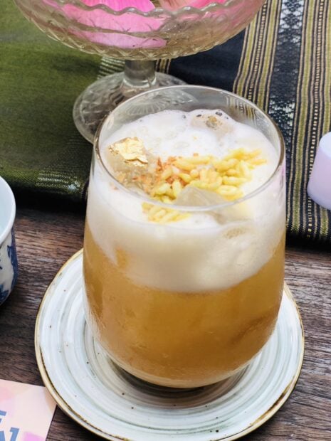 “เครื่องดื่มแก้วนี้ใช้กล้วยไข่นำมาปรุงผสมผสานกับส่วนผสมอื่น ๆ หลายชนิด มีความหวานอมเปรี้ยว รสชาติเป็นเอกลักษณ์ และยังมีความกรุบกรอบของข้าวเม่า ทั้งเสิร์ฟมาพร้อมกล้วยตากชิ้นเล็ก ๆ เพื่อตัดรสกัน เป็นอีกเมนูที่เพิ่มความสนุกในการดื่มให้เพลิดเพลินมากยิ่งขึ้น”