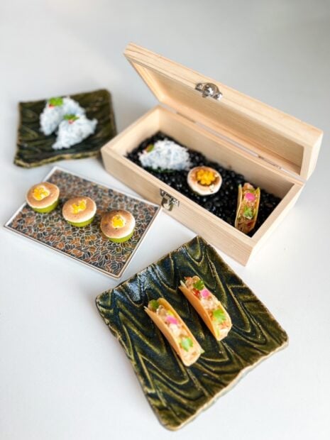 โดยเมนูแรกนั้นก็คือ “ปั้นคำหอม” ซึ่งต้องขอบอกเลยว่า ขนมที่ได้แรงบันดาลใจมาจากขนมถั่วแปบไส้กุ้งที่หาทานได้ยาก แต่ยังหาทานได้ที่ตลาดนางเลิ้ง เมื่อรังสรรค์ออกมาแบบใหม่ จะอร่อยขนาดนี้ โดยเฉพาะตัวแป้งผสมจากสีธรรมชาติ คือสีจากอัญชัน พร้อมเนื้อที่สอดไส้กุ้งเน้นๆ เมื่อทานไปทั้งชิ้นในขนาดที่ดีไซน์ขึ้นมาใหม่อย่างพอดีคำ จะรสชาติดีขนาดนี้