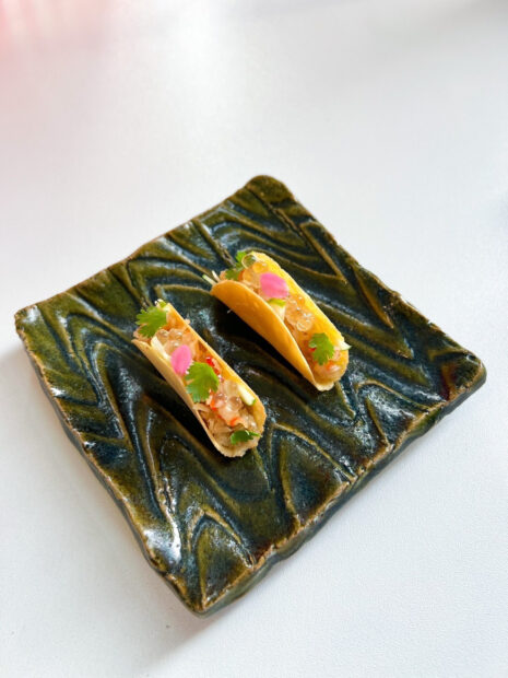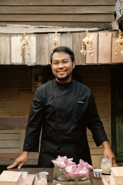 เมนูถัดมากับ “ละเลิงรส” ที่ความสร้างสรรค์ถูกละเลิงอย่างมีรสชาติ ผ่านการผสมผสานอย่างกลมกล่อม เป็นขนมที่ได้แรงบันดาลใจมาจากขนมเบื้องไทยและขนมเบื้องญวน โดยเป็นขนมเบื้องกรอบ สอดไส้ขนมญวน แป้งขนมเบื้องไทย ไส้มาจากขนมเบื้องญวน แต่สิ่งที่พิเศษคือ กินคู่กับสเฟียร์น้ำอาจาด อร่อยหมดในคำเดียว