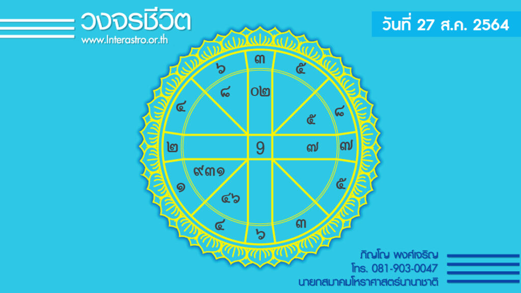 สุริยคติกาล วันที่ 27 สิงหาคม พ.ศ. 2564 ค.ศ. 2021 จันทรคติกาล ตรงกับวันศุกร์ แรม 4 ค่ำ เดือน 9 ปีฉลู ตรีศก จุลศักราช 1383 อาทิตย์อุทัย เวลา 06.06 น. เที่ยงจริง เวลา 12.20 น.อาทิตย์ตก เวลา 18.34 น. จันทร์ขึ้น เวลา 22.21 น.